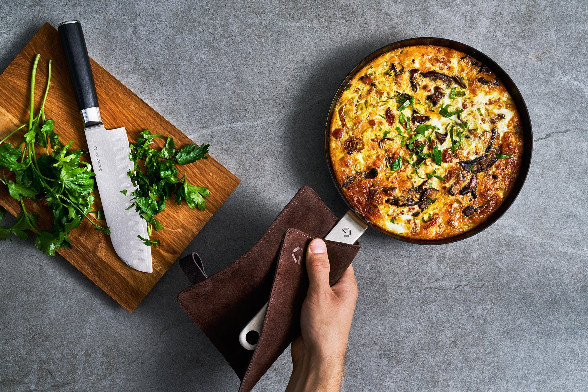 Våra kolstålspannor är handgjorda i Italien av våra vänner och partners Franco, Mario och Eliano, som noggrant tillverkar varje produkt i sin familjeverkstad med över 130 års expertis. Det är dansk design, italienskt hantverk och din garanti för kvalitet på högsta nivå.