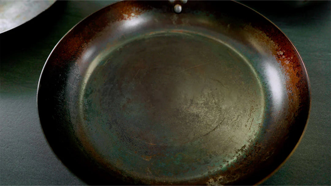 Kolstål är ett material som är känt för att utveckla en naturlig non-stick patina.