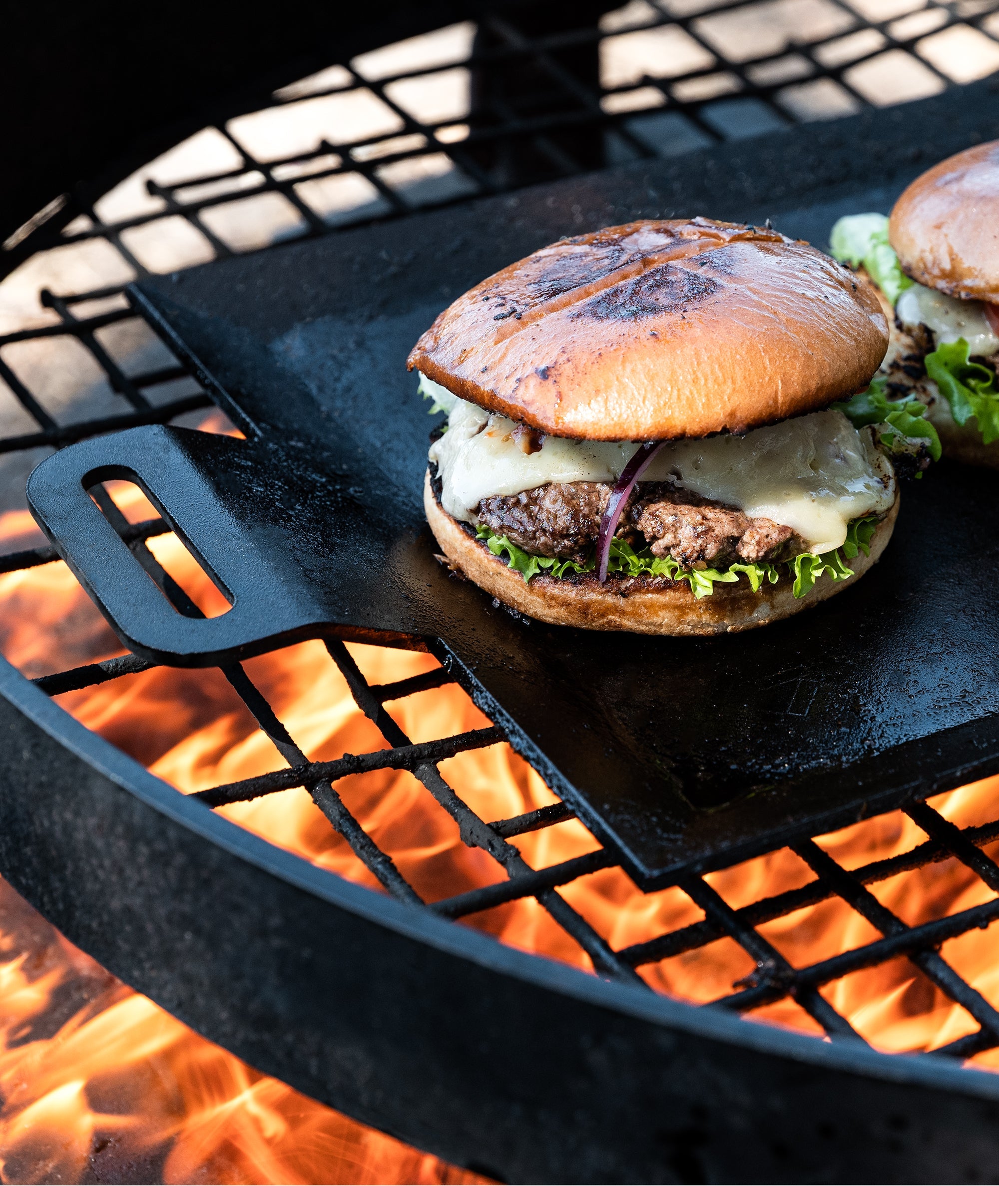 Här är vår syn på en klassisk hamburgare, lättlagad på grillen, över en lägereld eller inomhus på spisen. Smash hamburgare ger en extra krispig bryn. Allt du behöver är en bra gjutjärnspanna eller stekpanna. Och naturligtvis en smasher/grillpress.