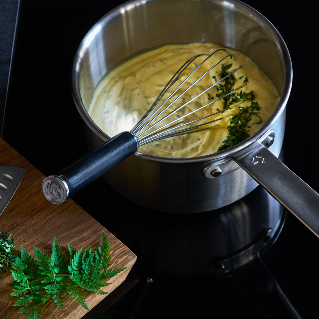 Vi frågade Danmarks främsta kockar hur den ultimata serien av kastruller och stekpannor skulle se ut, och här är resultatet. Med professionella detaljer som hällkant och material som används i världens finaste restauranger. Satsen innehåller en 7-liters gryta, en 4-liters gryta och en 2,5-liters kastrull. Med dessa tre funktionella storlekar är du väl rustad, oavsett om du lagar buljong, tillagar en gryta eller vispar en bearnaisesås.