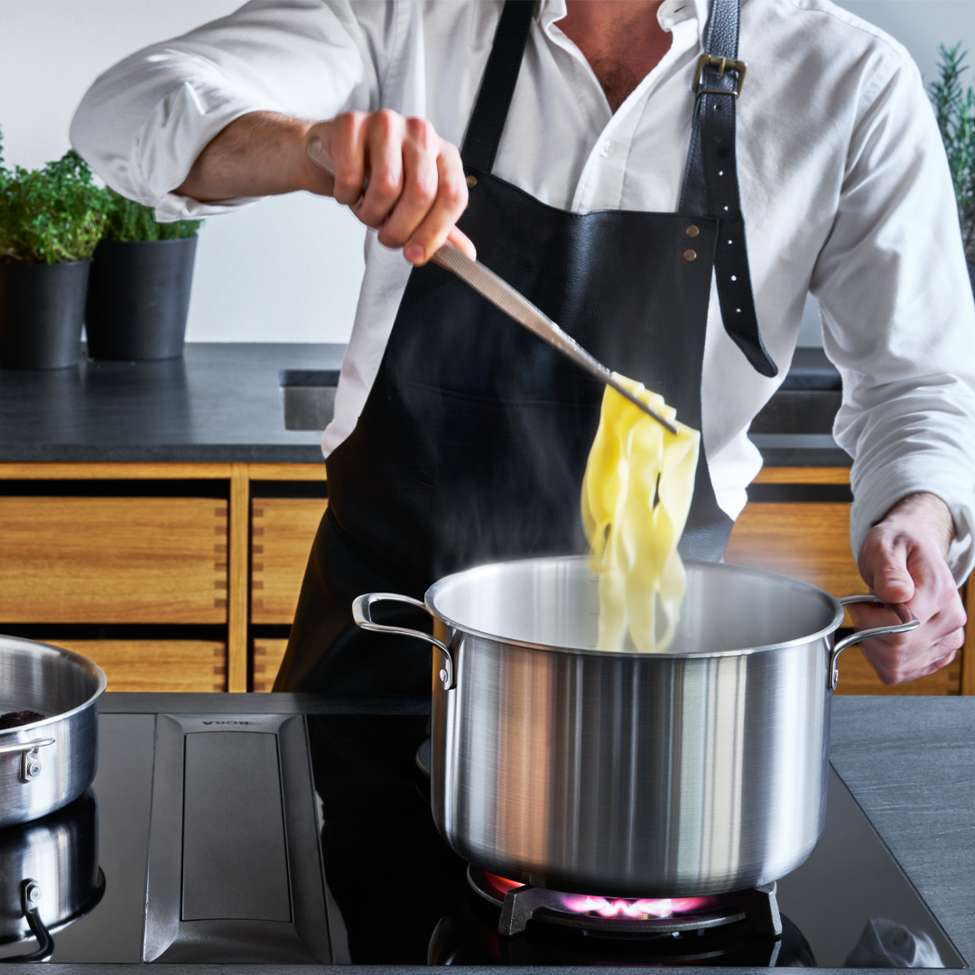 Du får precis värmekontroll tack vare aluminiumkärnan, som ger utmärkt värmeledning och gör att du snabbt kan justera temperaturen. Till skillnad från kokkärl med en fast sandwichbotten sprids värmen naturligt uppåt längs sidorna eftersom både botten och väggarna är tillverkade i en 5-lagerskonstruktion – perfekt för rätter som risotto och långkokta måltider.