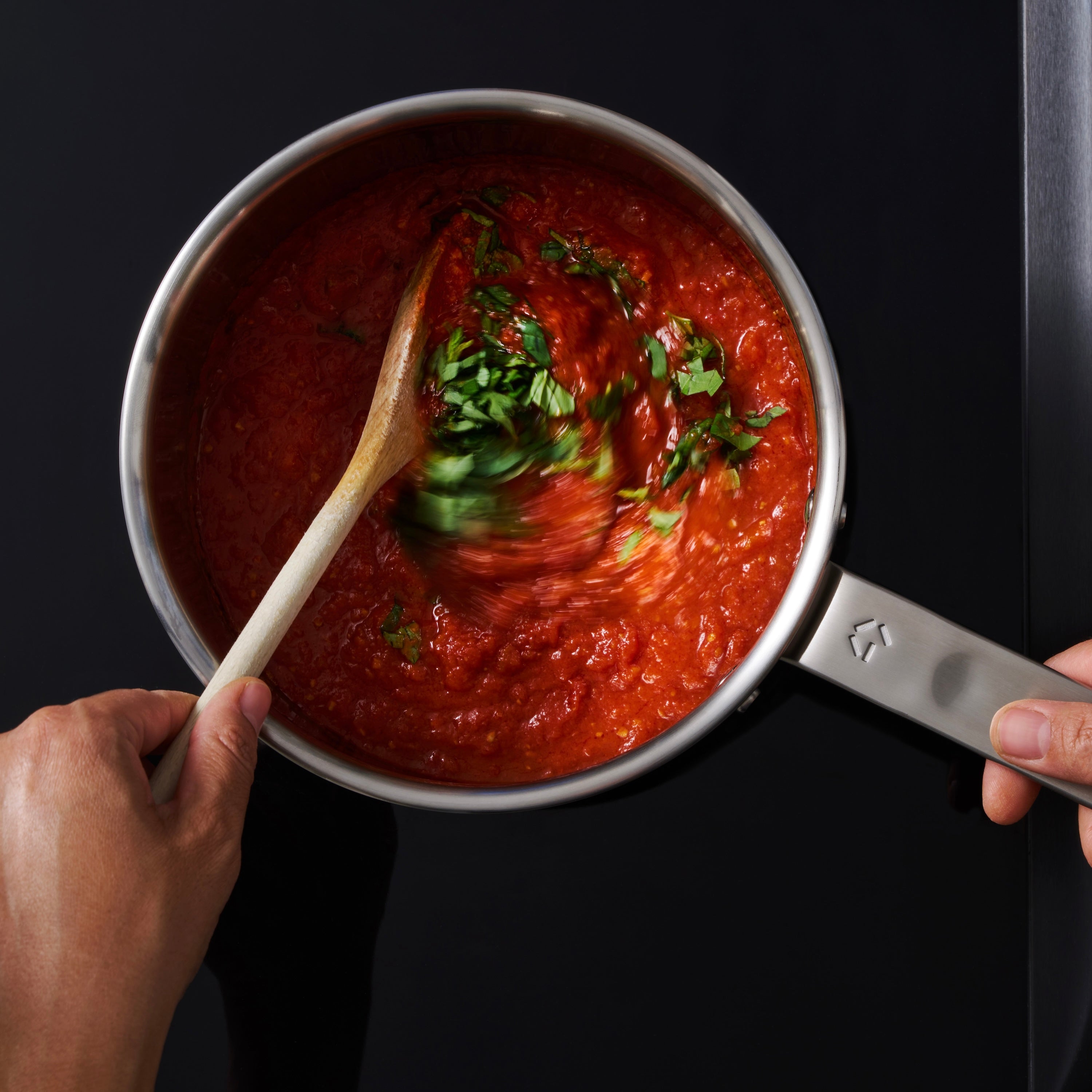 Upplev exceptionellt jämn värmefördelning tack vare den femlagerskonstruktionen, jämfört med de tre lager som vanligtvis finns i rostfritt stål. Detta eliminerar värmepunkter i botten av dina kastruller eller stekpannor, vilket förhindrar att maten bränns vid, blir ojämnt tillagad eller att såser separeras.