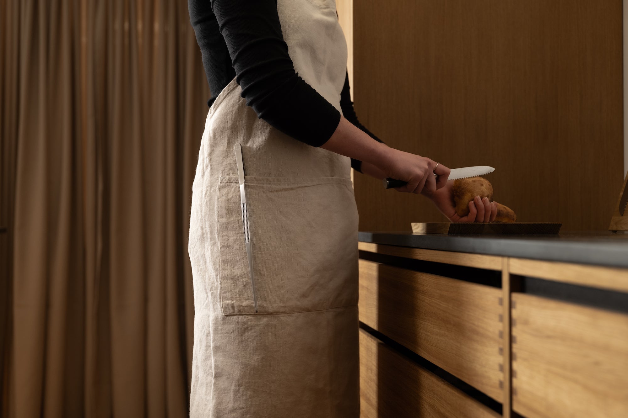 Slitstarkt förkläde i linneblandning, som både är bekvämt att bära och skyddar dina kläder från stänk och fläckar. Skapat baserat på över 150 års erfarenhet av hantverk.