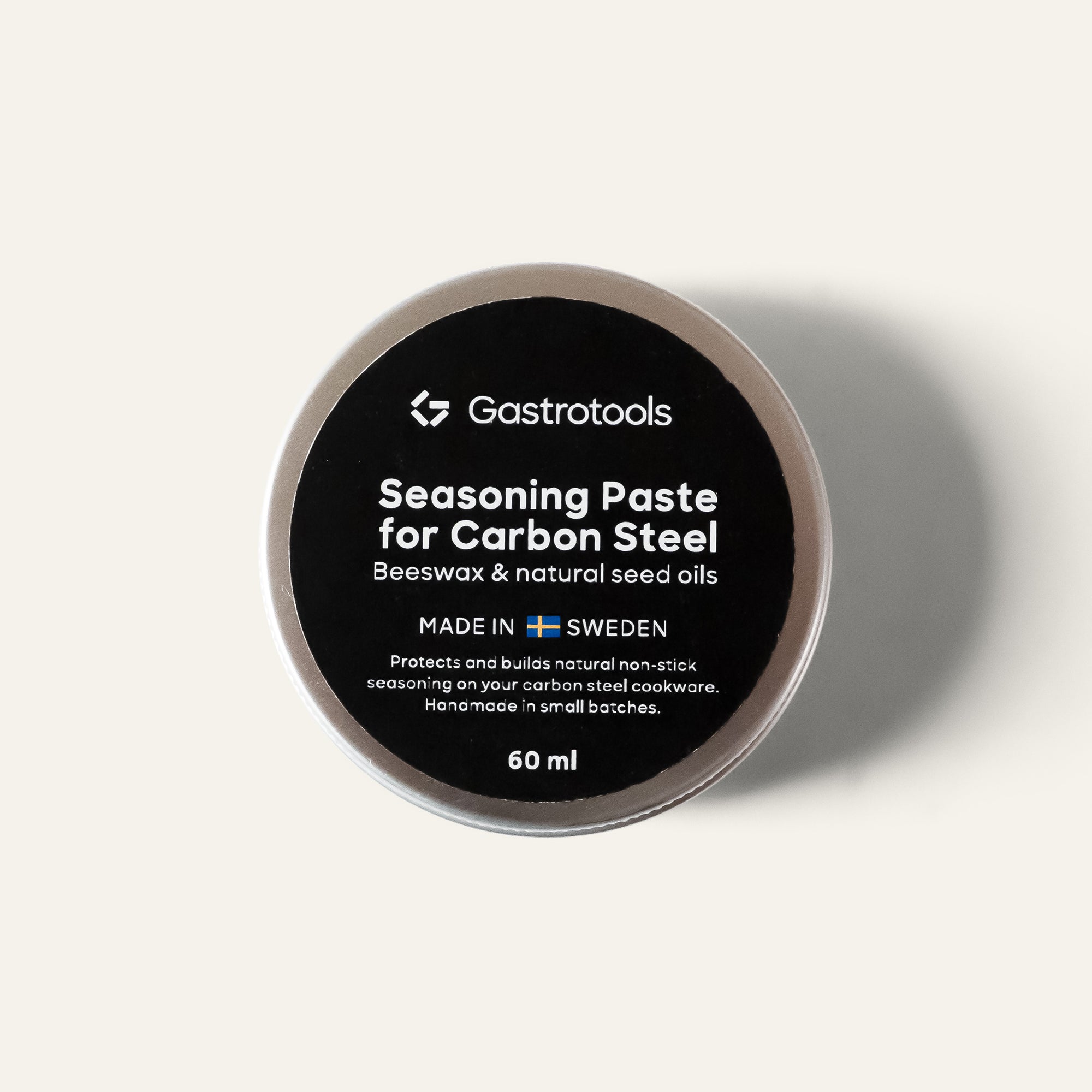 Vårdsvaxet har testats noggrant för att hitta den perfekta kombinationen; vaxet måste vara lätt att sprida, det måste skydda mot rost och det måste bilda en naturlig non-stick-beläggning så att din kolstålspanna blir bättre och bättre med tiden. Därför består vårdvaxet av den perfekta blandningen av bivax och naturliga oljor, vilket ger bästa resultat – och med linnetyget fördelas vaxet enkelt över stålytan i ett tunt, jämnt lager.
