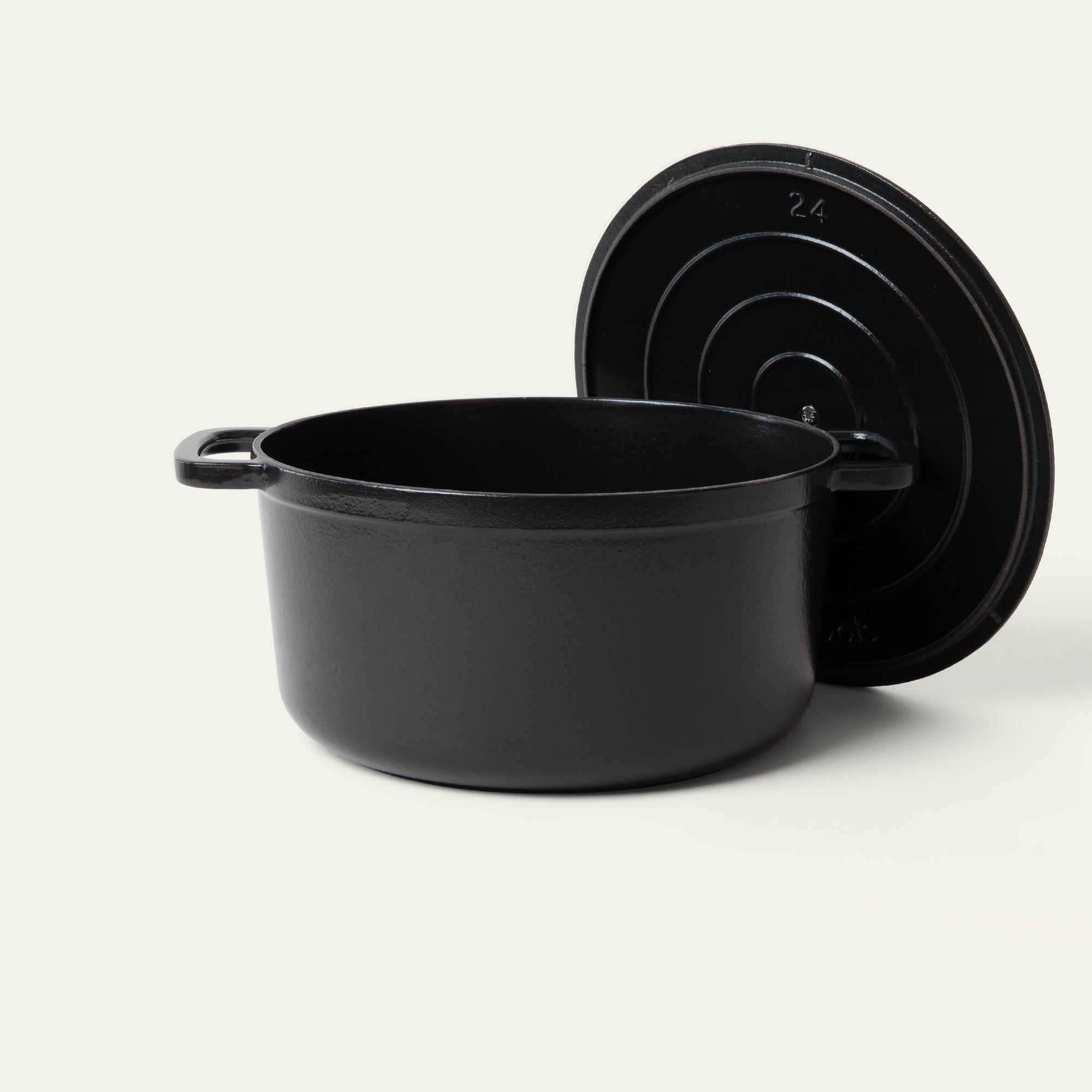 You only buy the right cast iron casserole once in a lifetime, which is why we have not compromised on production, materials or design. Our casserole is produced by a French company that has been creating top-quality cast iron products since the 1920s. Here, each casserole is cast in an individual sand mould made from up to 80% recycled materials. The enameling is done by hand by experienced experts to ensure that the surface is as strong as possible. It is in the quality of the enamel that the difference between cast iron casseroles is most evident — not tomorrow, but many years from now, when the casserole still delivers perfect results, time after time.