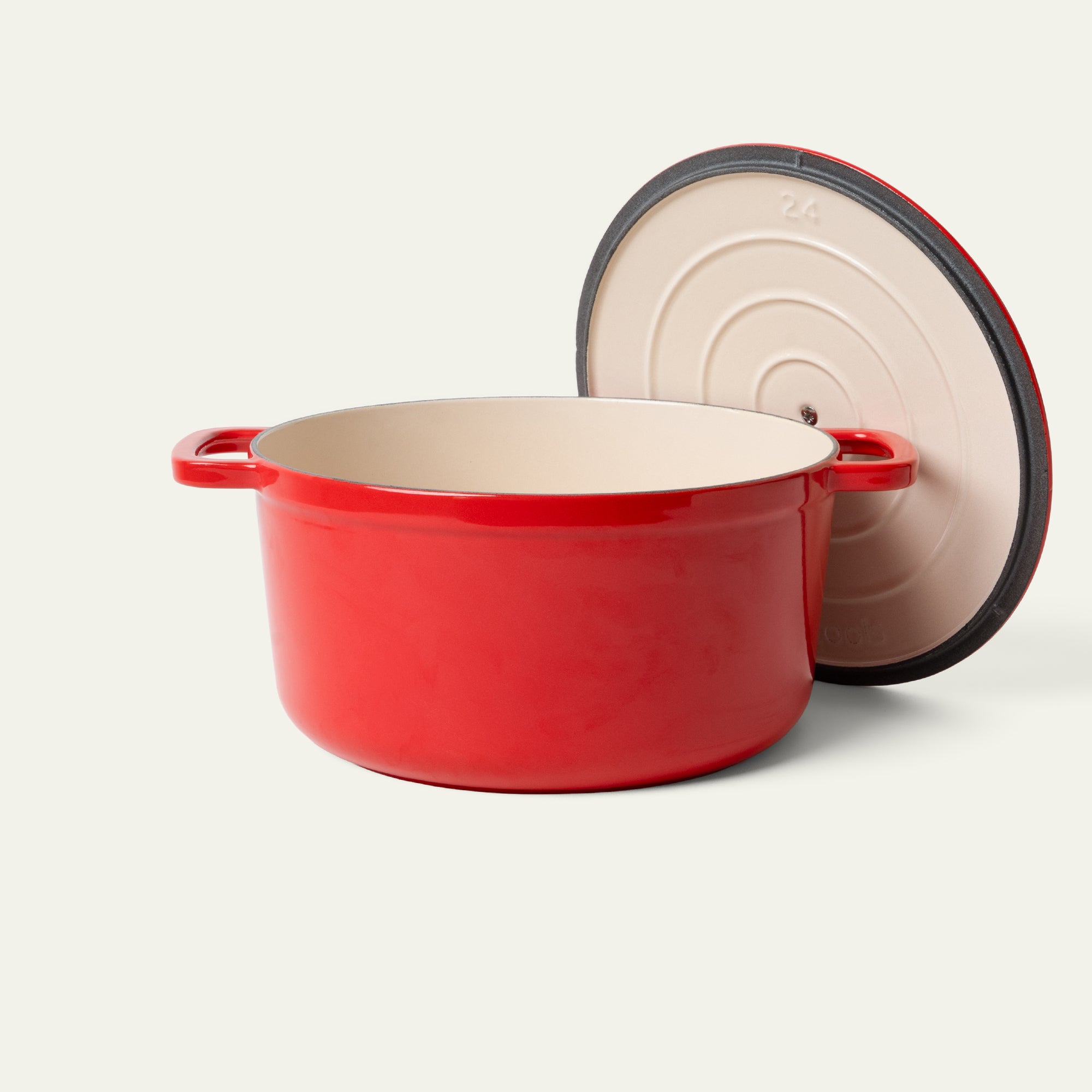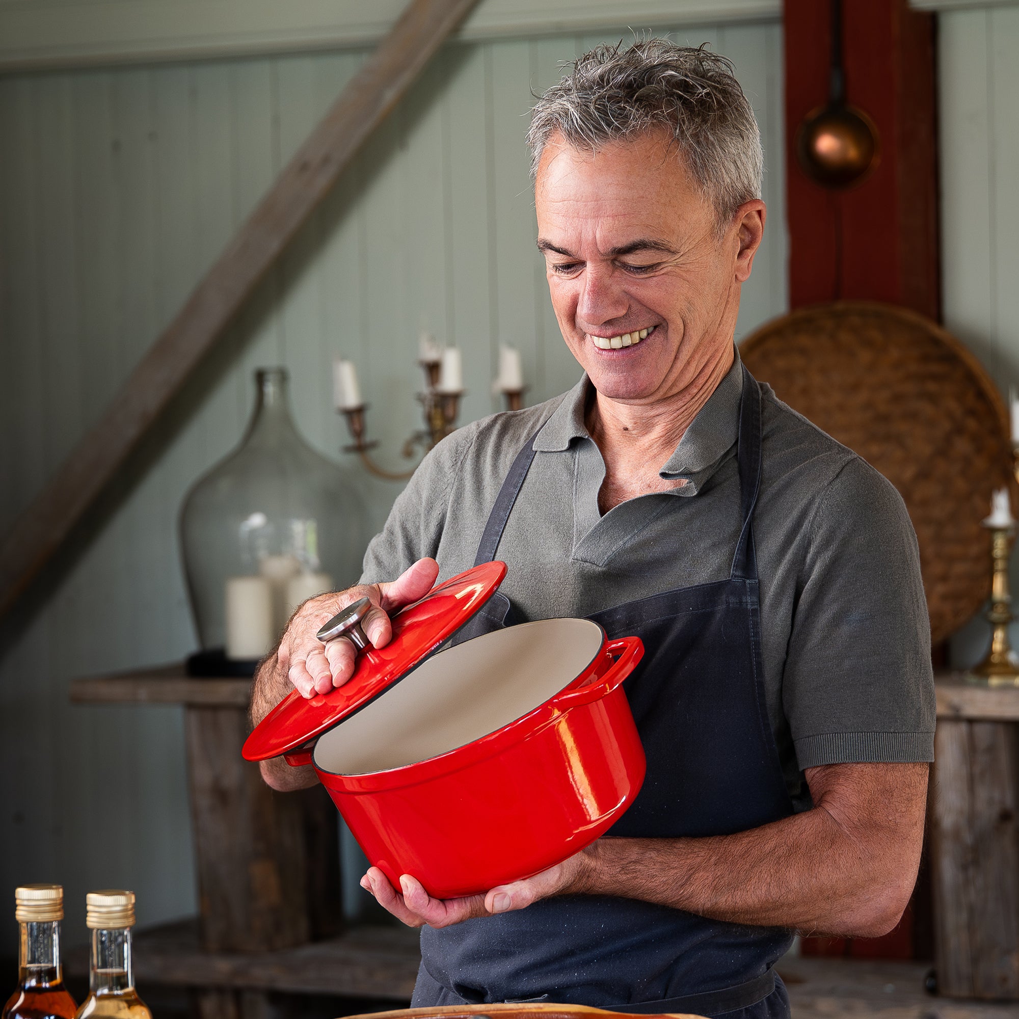 In collaboration with CARDENAU, we have launched a color that represents them, their approach to cooking, and their French roots. The result is a beautiful cast iron casserole in CARDENAU red, available in limited quantities. Cast iron casseroles have been the foundation of both private and professional kitchens for many decades. That is why we have developed an enameled cast iron casserole that combines tradition and function in a timeless kitchen classic. Create wonderful dining experiences with flavorful boeuf bourguignon, chicken danoise, or freshly baked, juicy casserole bread. This is the pot you place in the middle of the table when the family gathers—both now and for many years to come.