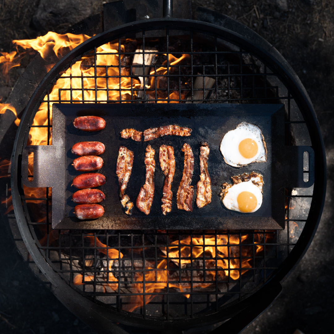 Stekplattan är inspirerad av professionella kök och byggd för ett livslångt kulinariskt äventyr – både inomhus och utomhus. Kolstål är lika hållbart som gjutjärn men väger bara hälften så mycket, vilket ger fantastisk värmekontroll och naturliga non-stick-egenskaper som bara blir bättre med tiden.