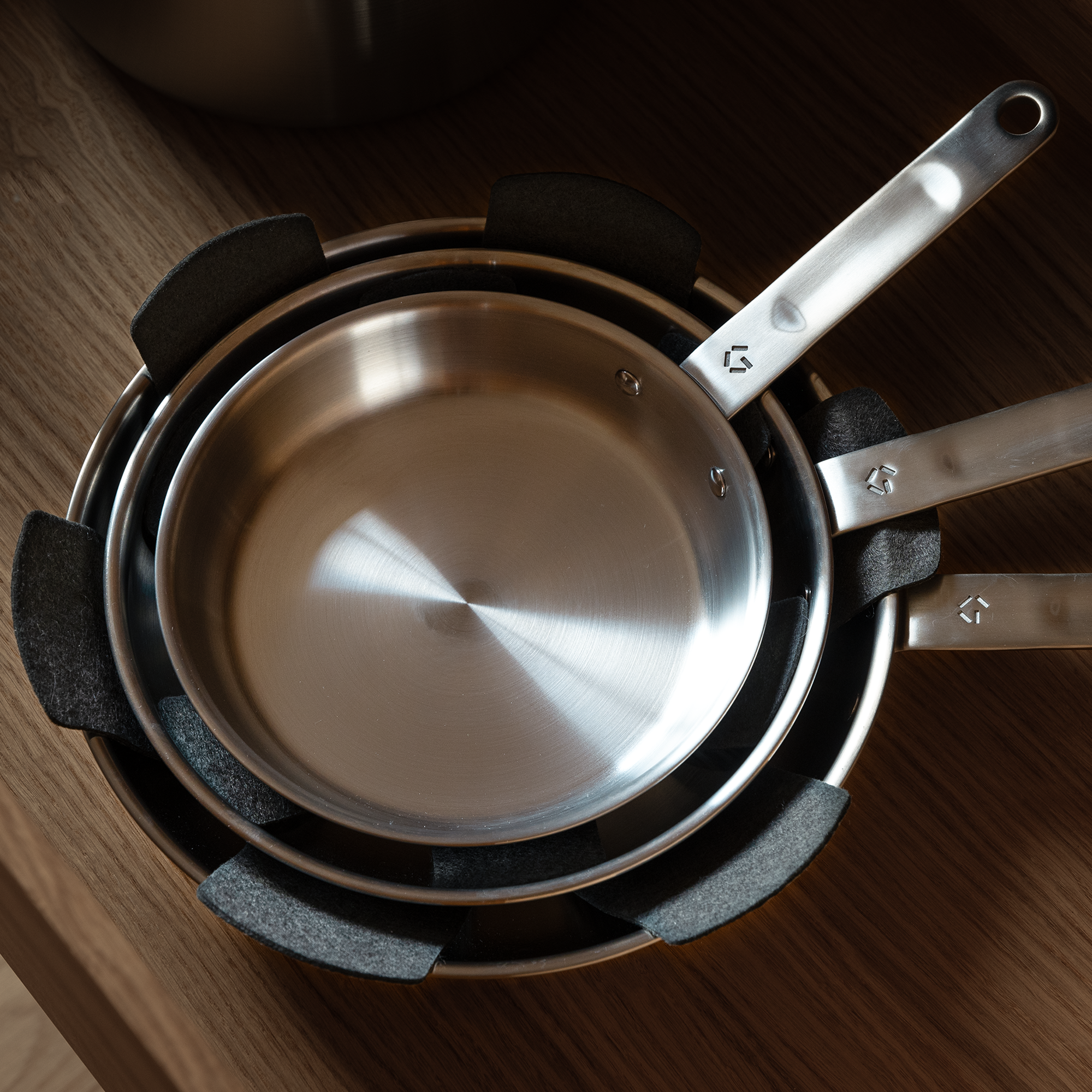 Staplar du dina stekpannor? Ta väl hand om dem genom att placera stekpanneskydd emellan.