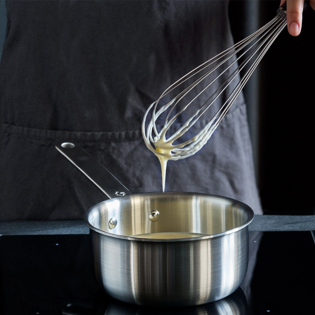 Här får du 7 starka trådar i rostfritt stål som ger maximal vispkraft, så att du enkelt kan vispa luft till såser, äggvitor eller finmixa äggblandningen till din omelett.
