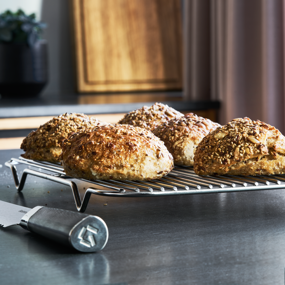 Gallret är designat för att passa perfekt i ugnsformen, så att du kan lägga en stek, en hel anka eller kyckling på det medan juicerna droppar ner, redo att bilda basen för en sås. Tack vare gallrets robusta design behöver du inte oroa dig för att det ska böjas under vikten av det du lagar.