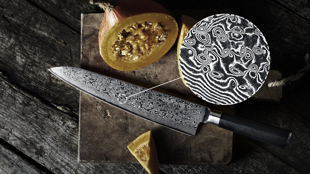 - Stål: VG10-kärnstål omgivet av 66 lager rostfritt stål (totalt 67 lager)