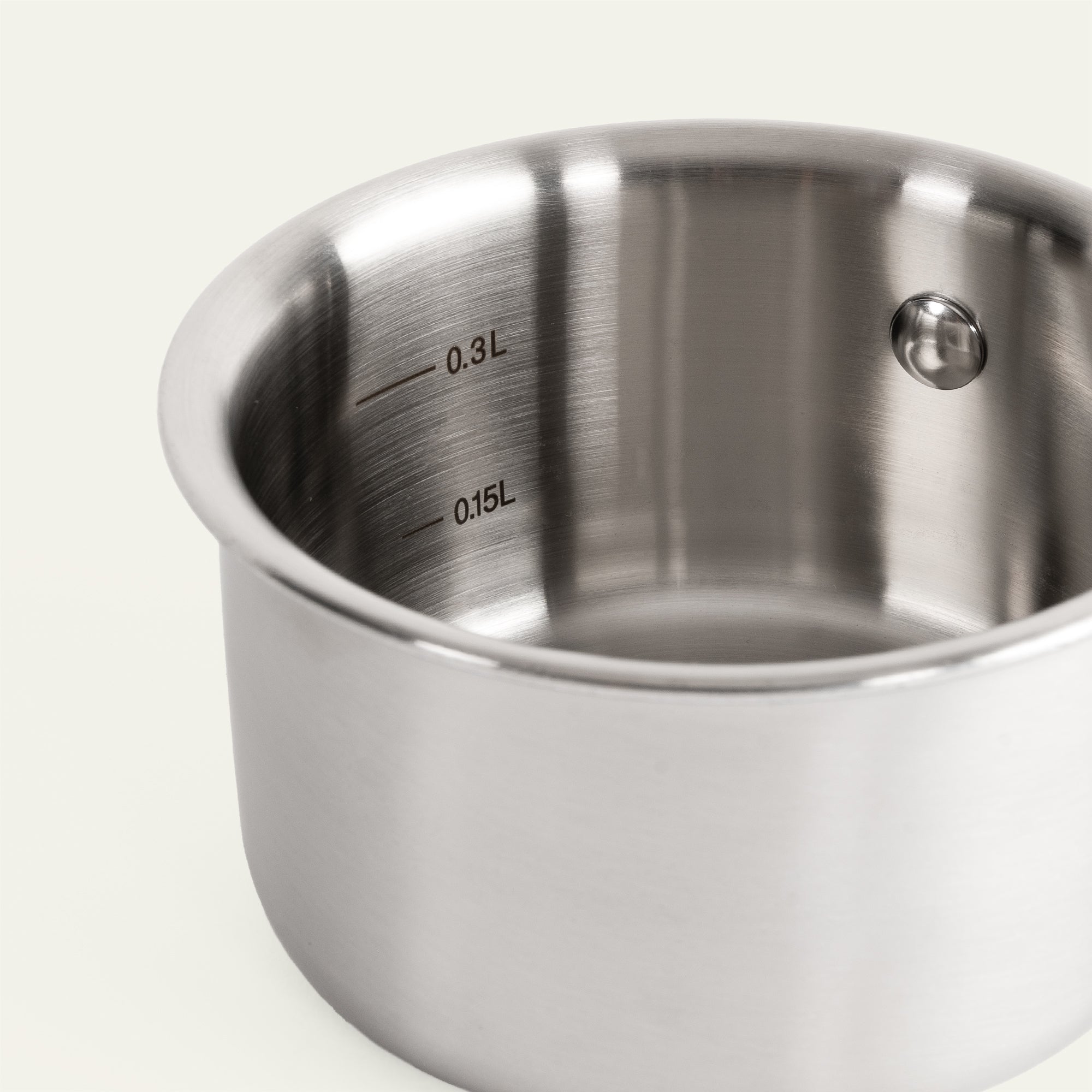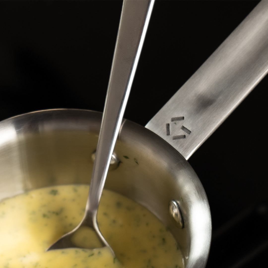 Du får precis värmekontroll tack vare aluminiumkärnan, som har utmärkt värmeledningsförmåga, så att du snabbt kan justera temperaturen. Till skillnad från kokkärl med en fast sandwichbotten sprids värmen naturligt upp längs kastrullens sidor eftersom hela kastrullen är tillverkad av 5 lager – perfekt för jämn uppvärmning av såser.